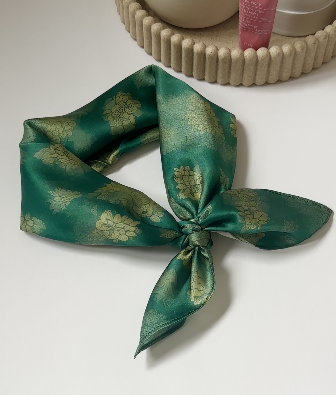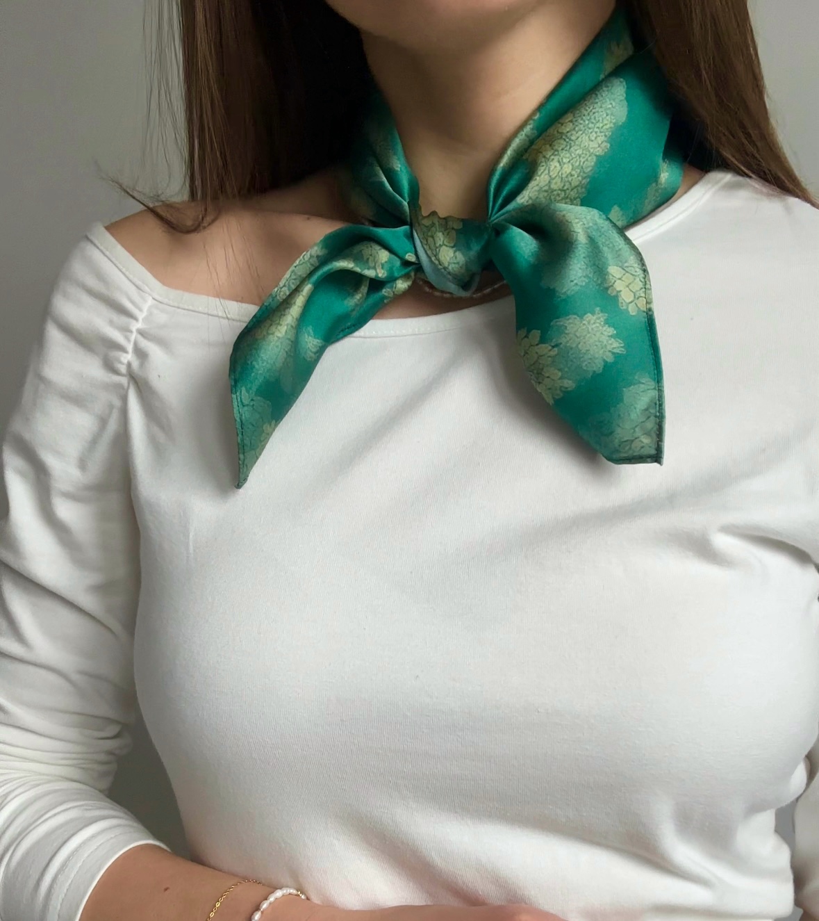 Lekka, delikatna tkanina miękko układa się na szyi. Naturalny jedwab oddycha i dopasowuje się do temperatury, dlatego szalik sprawdzi się zarówno w chłodniejsze, jak i cieplejsze dni.